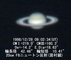 1998/12/28 09:02:34(UT) CM‡T=219.0KCM‡V=160.3K De=-14.2KE.Dia=18.63" —Ö’·Œa 42.46" —Ö’ZŒa 10.41" 20cm F8ƒjƒ…[ƒgƒ“”½ŽË(•c‘º‹¾)@ ƒeƒŒƒrƒ…[3‚wƒo[ƒ[ƒŒƒ“ƒY ‡¬‚e24 NEC PICONA 1/7•b 3–‡ƒRƒ“ƒ|ƒWƒbƒg “§–¾“x@9/10 ƒV[ƒCƒ“ƒO 7/10