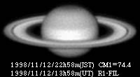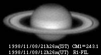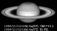 11月上旬に発生したEZsの白斑をねらった画像ですが、予想経度を捉えているのは11月13日の画像です。この日はCM1=170度辺りに予想されていましたが、明瞭な白斑は捉えられませんでした。13h38m(UT)の画像のCM前方の予想経度に、小さな白斑らしき模様があり、その後の画像にも自転している様子が捉えられていますが、これが11月3日に観測されたEZsの白斑かどうかははっきりしません。この白斑は短命であった可能性も考えられます。