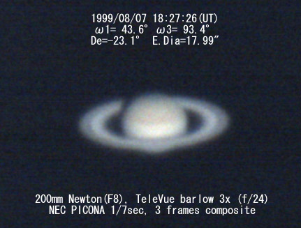 De=-23.1 E.Dia=17.99" Ring Long dia 41.02" Ring short dia 16.08" 310mm Newtonian(F5) TeleVue barlow 3x f/27, 1 deg. prism, Digital camera NEC PICONA 1/7sec