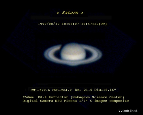 1999/08/12 18:56:07-18:57:22(UT) I=322.6 III=204.2 De=-21.0 E.Dia=18.16" 250mm Refractor(F8.9) Nakagawa Science Center NEC Picona 1/7sec, 5 images composite