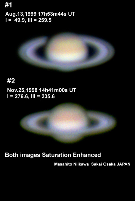 Recently we find that the color of Saturn SSSTZ has turned red. which was pointed out by Mr.Ikemura at first.So I try to compare recent image with last apparition image. Unfortunately there was not same CM image.