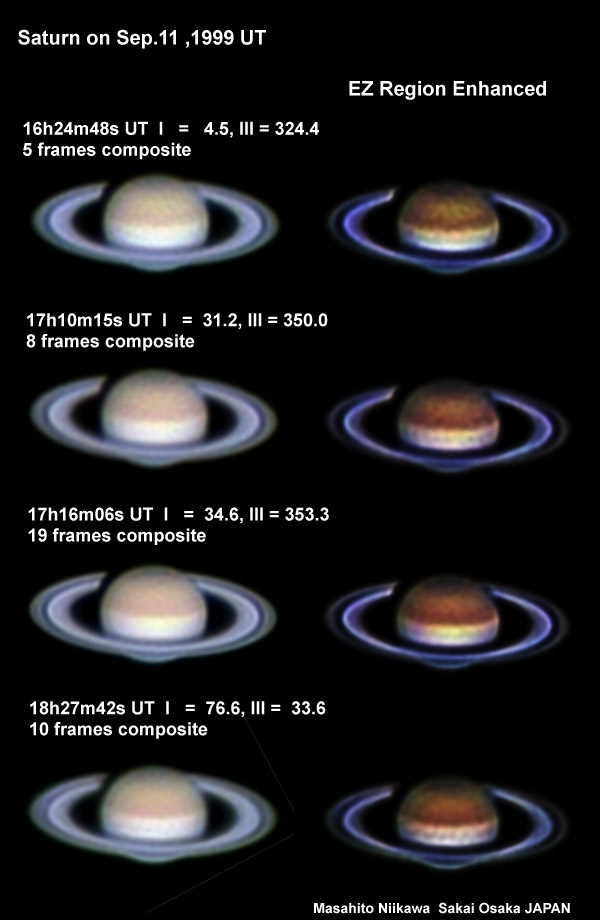 Enhanced the bright area of the Saturn to indicate the datail of EZ (the right images).