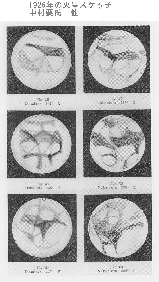 1926年の火星スケッチ ("Report on Mars no.43",W.H.Pickering, Popular Astronomy,vol.37,560,1929) 「日本で観測された火星」『天界』第117号96頁 中村要と反射望遠鏡(富田良雄・久保田諄 著)98頁 掲載協力 愛知県犬山市山 田達雄氏 ≪滋賀県 中村要 ≫