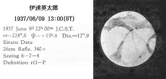 1937/06/09 12:48(UT) 1937/06/09 21:48 =222=15.6 Dia= 17".9 Seeing 7 Definition rP-M 1937/06/09 12:48(UT) 1937/06/09 21:48 =222=15.6 Dia= 17".9 Seeing 7 Definition rP-M