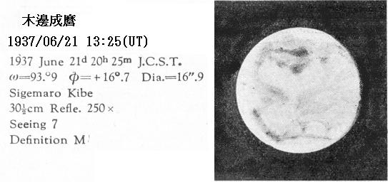 1937/06/21 11:30(UT) 1937/06/21 20:30 Φ= 95Σ=16.6 Dia= 16".8 Seeing 7 Definition M