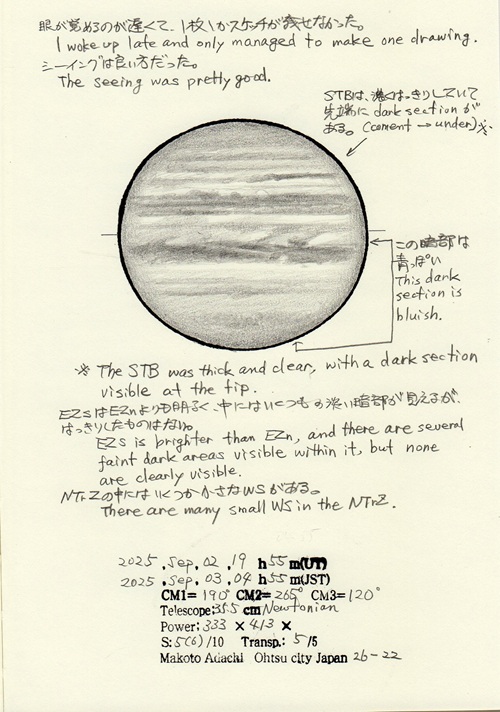 シーイング不良で煙突越しに見ているように像が揺らめいています