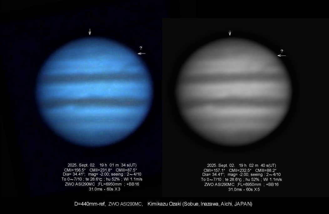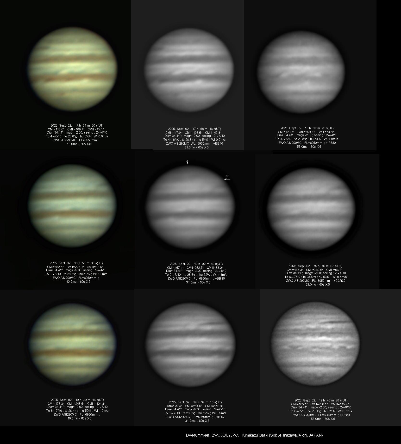 木星、GRS前方の様子。CMOSカラーで全色を撮ってみましたがUVの写りは劣りますね。UVはモノクロカメラが断然有利。