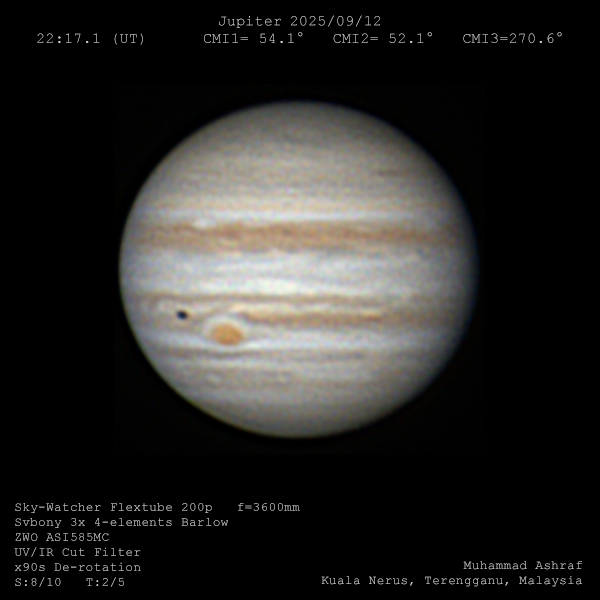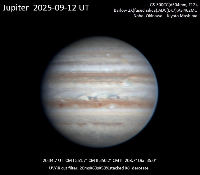 スコールの痕跡。涼しめの南風が吹き時折千切れ雲が飛来しますがシーイングは良好。 EZとSEBの境界の一部が決壊したような模様が見られます。[眞島清人 : Kiyoto Mashima,Naha,Okinawa,Japan]