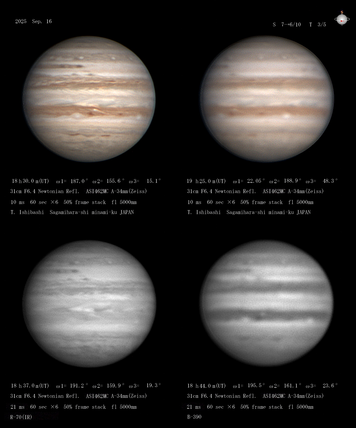 一週間ぶりの木星で、大赤斑後方の領域です。