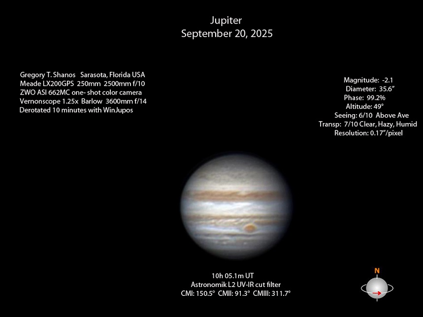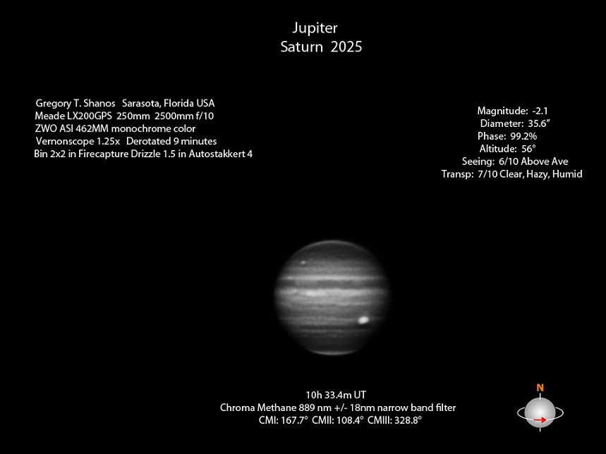 Clear, slight haze and humid. Above average seeing. Jupiter in methane and ultraviolet came out nice.