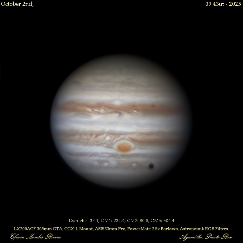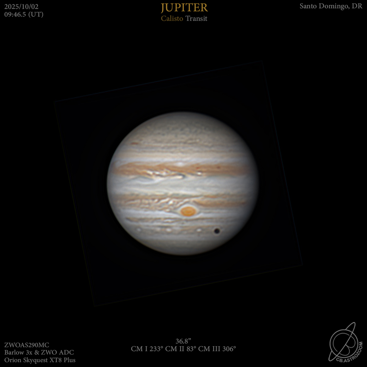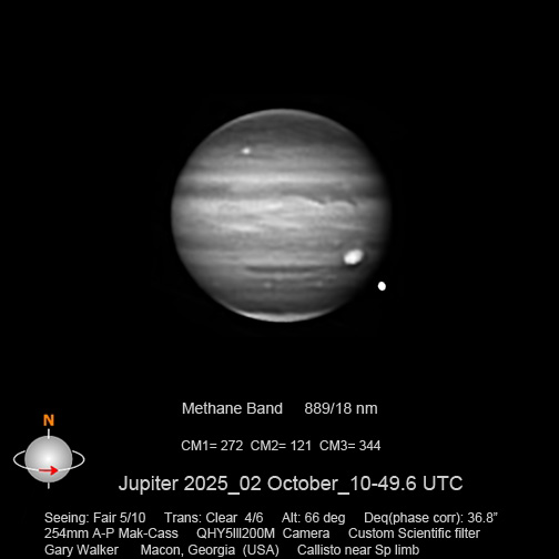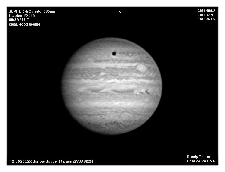 and Callisto is nearing the end of transit near the south preceding limb. Seeing was fair but not optimal.