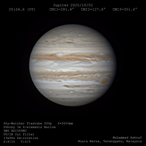 大赤斑前方のSEBは幅広く、フックの先っぽや短いSTrBが少し濃くなったように感じました。