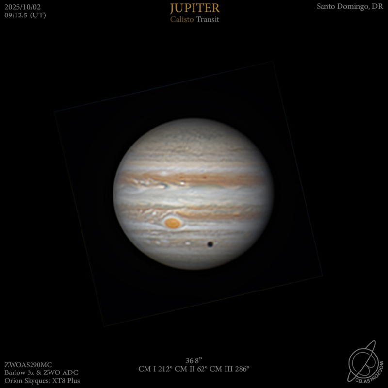 Callisto transiting the planet - quite a testimony to how dark an albedo it has compared to Jove.
