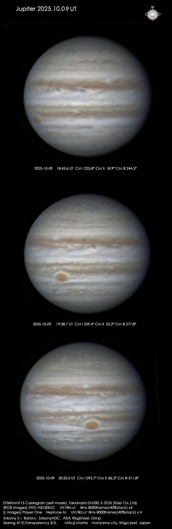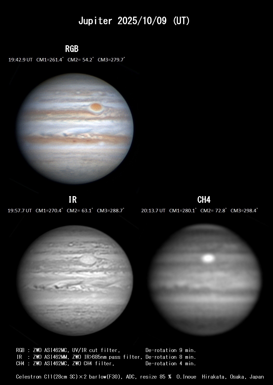 雲が多く、RGBとIRは晴れ間から撮影出来ましたが、CH4を撮り始めるとともに雲が流れてきて、短時間で曇ってしまいました。≪大阪府 枚方市 井上 修≫[Osamu Inoue. Hirakata-shi,Osaka,Japan]