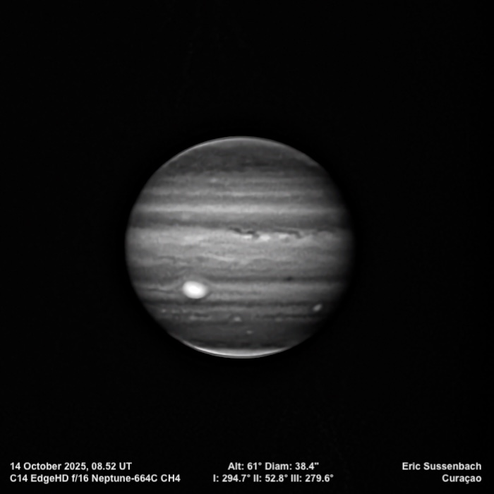 Images from this morning,the boring side of Jupiter,a very bright spot in the NEB,