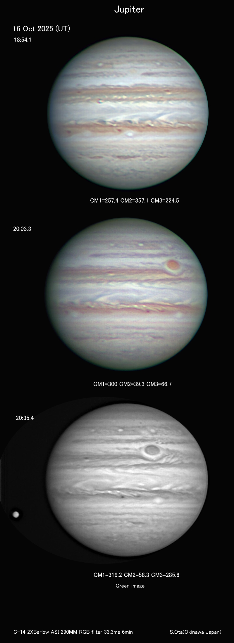北東から涼しい風と足早の雲の流れ。透明度・シーイングともに良好。RGB後半の画像にGanymedeが写り込みました。