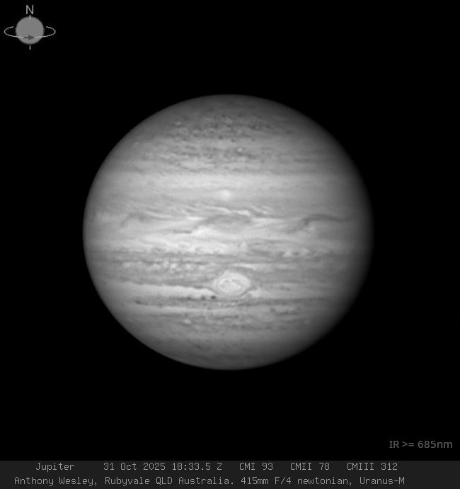 Hi all,here's an image of Jupiter from this morning using a 685nm longpass filter in reasonable seeing.