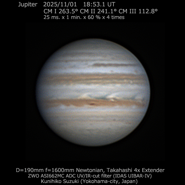 今シーズン初木星を漸くゲットできました。シーイングは薄明に入って少し改善しました