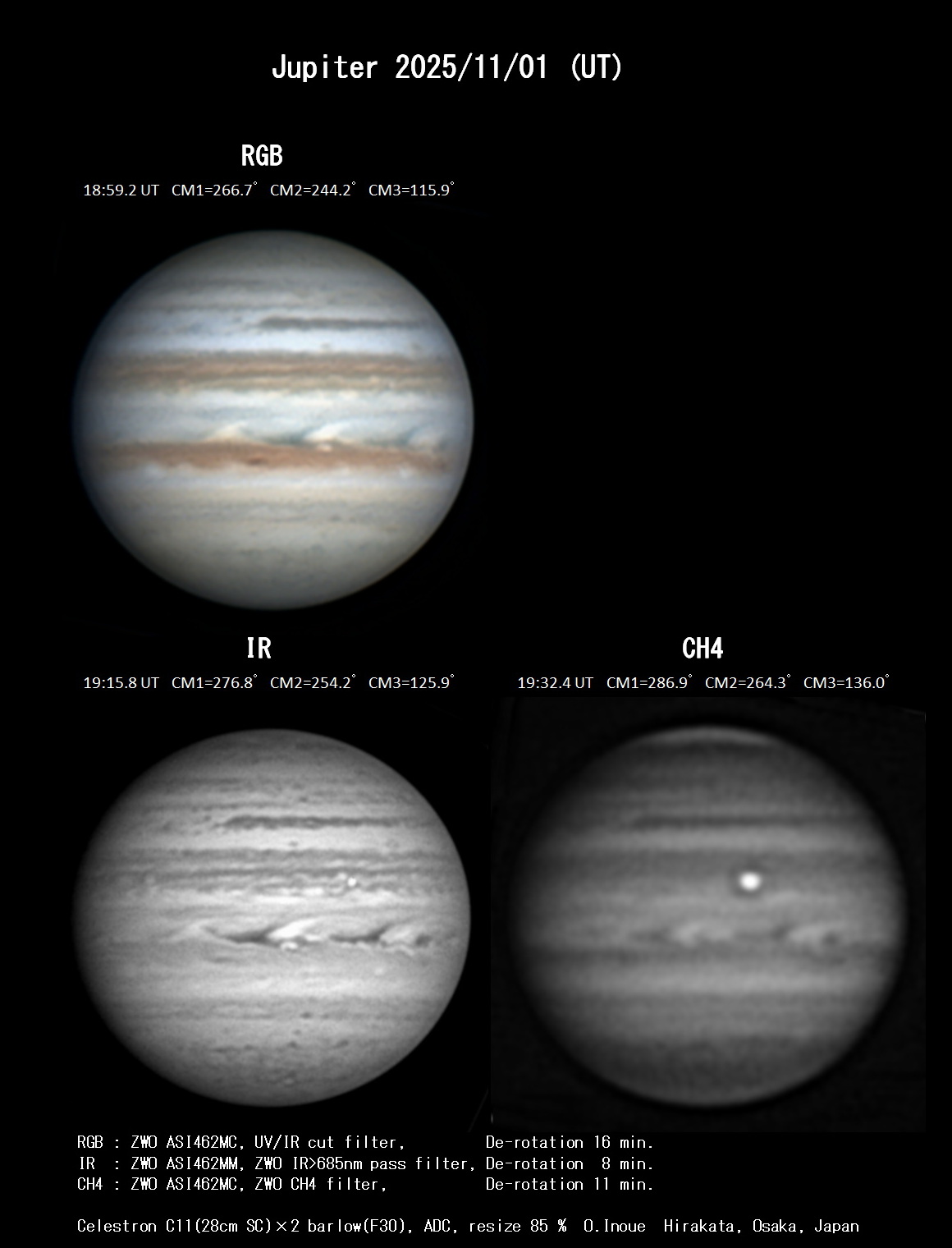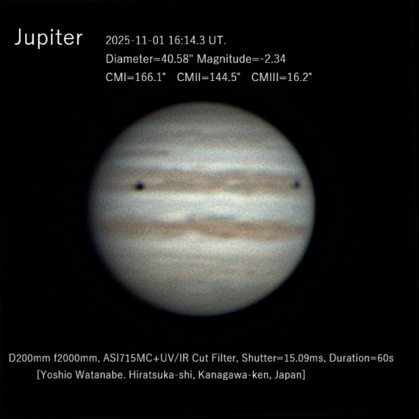 昨日よりも少しだけシーイングが良くなりました。大赤斑後方の経度です。