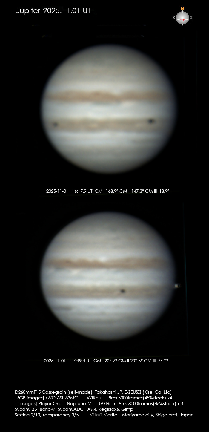 昨年の画像と比較すると木星エッジがくっきりしイメージが良いと思います。これで気流がもう一段良ければ願うばかりです。