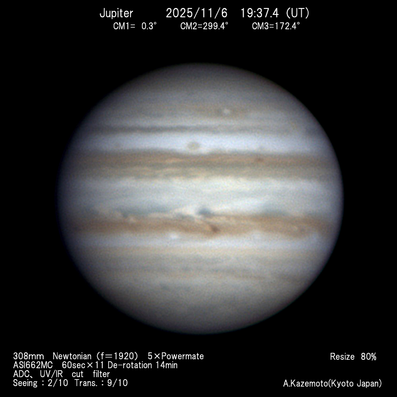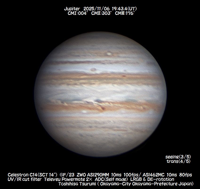 大赤斑の後方に出た白斑が左端近くにあるはずですが、この気流ではムリ。