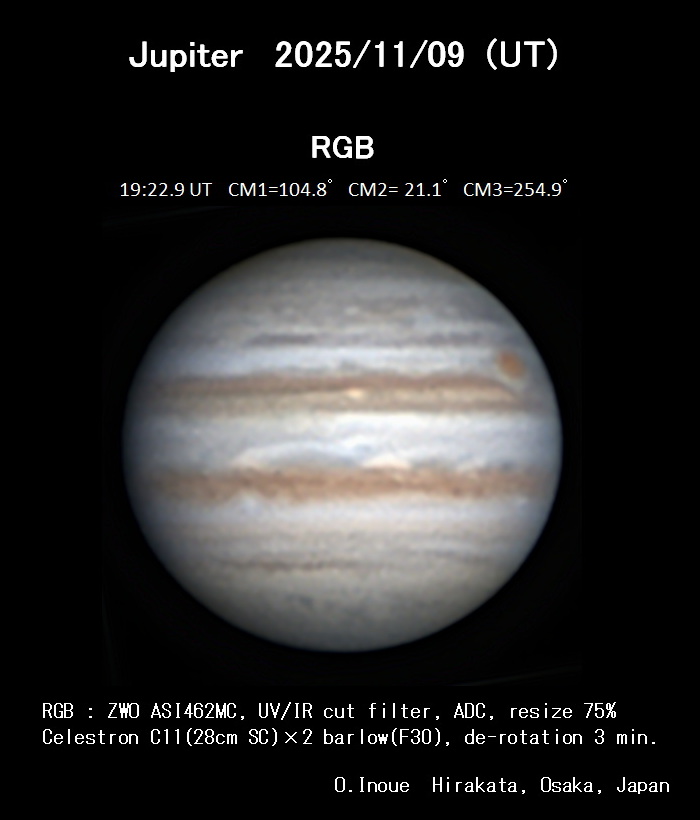 ほぼ曇り空でしたが、僅かな晴れ間から短時間撮影。シーイングも良いとは言えませんでした。≪大阪府 枚方市 井上 修≫[Osamu Inoue. Hirakata-shi,Osaka,Japan]
