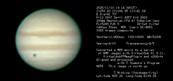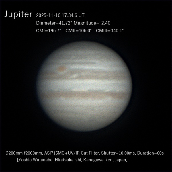 Jupiter Image 2025/11/10(UT)