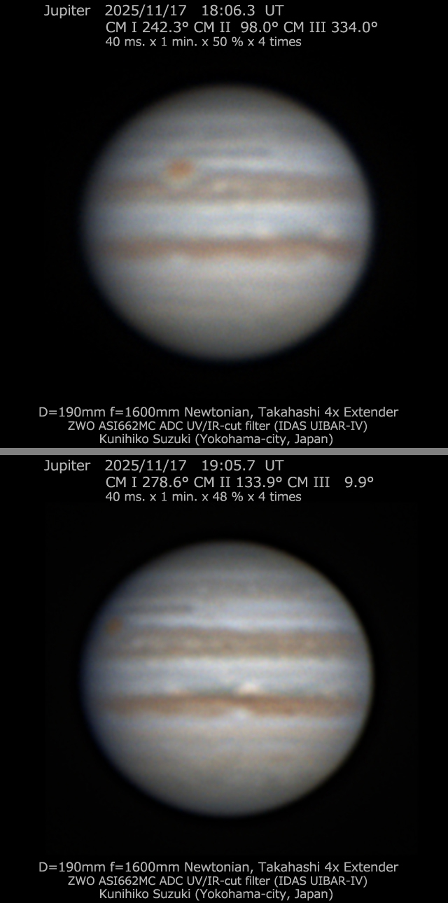 寒気の南下でぼけぼけでした。大赤斑とその後方です。