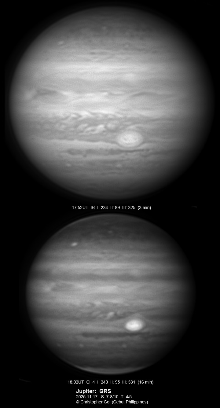 GRS後方の白雲活動は穏やかであるがIR画像では複雑、GRS内部に模様があるが気流が悪い。
