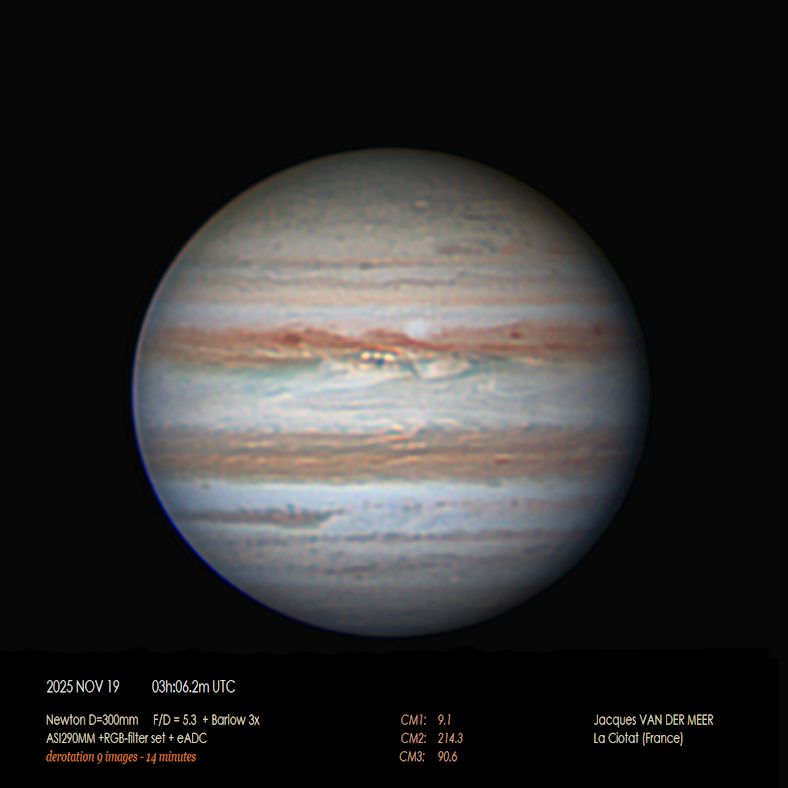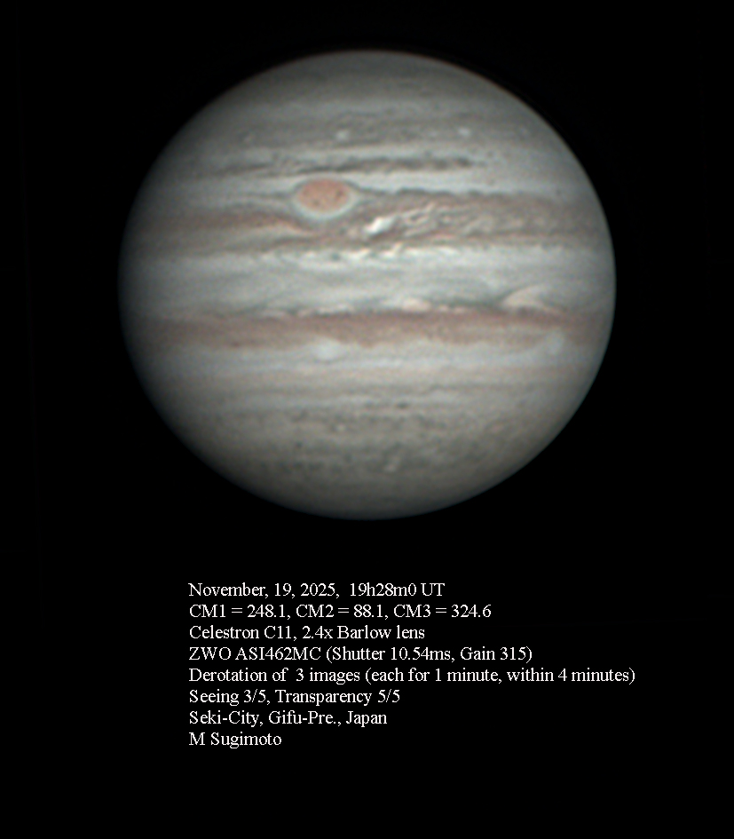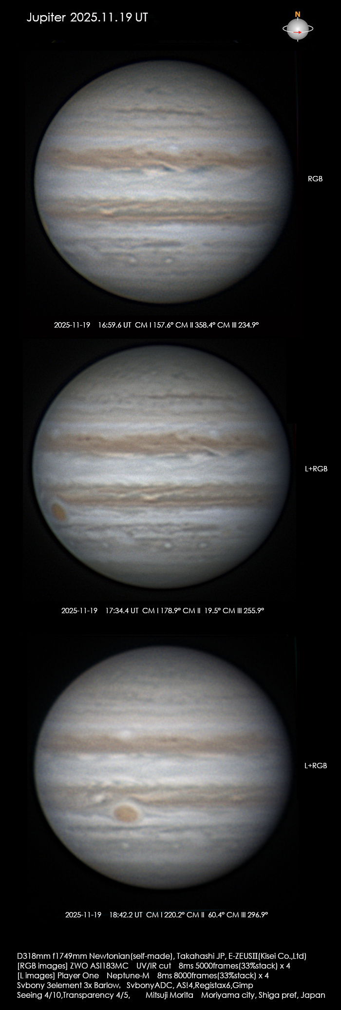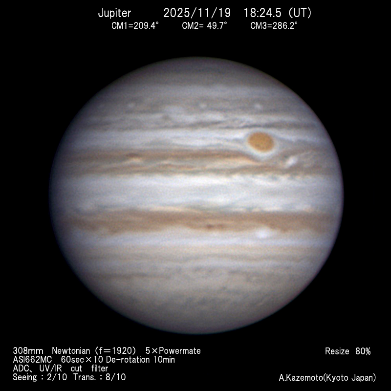土星撮影時は好気流だったので期待していたのですが木星はシーイング悪く細部が出ませんでした。