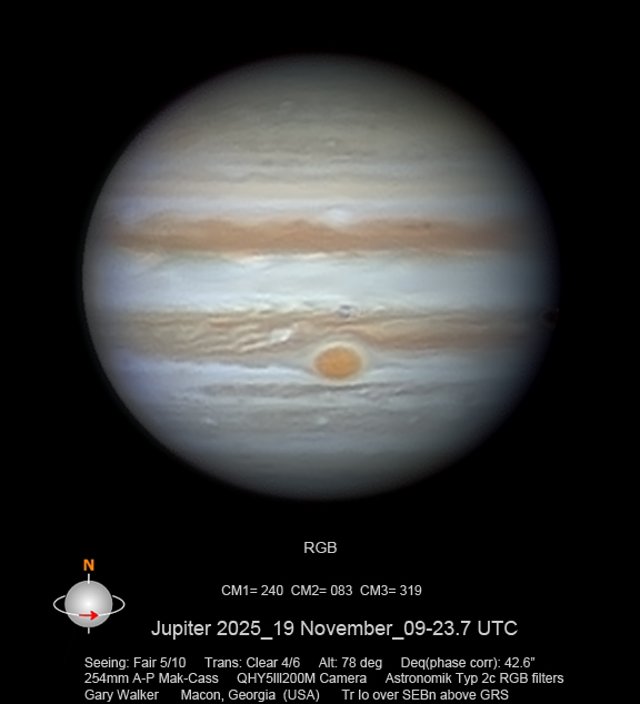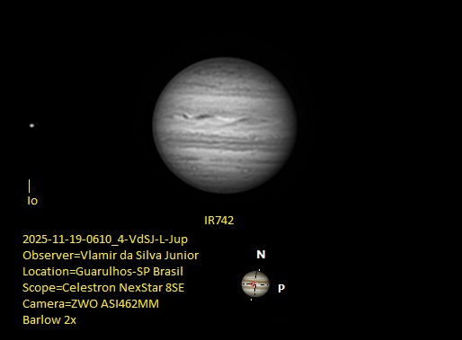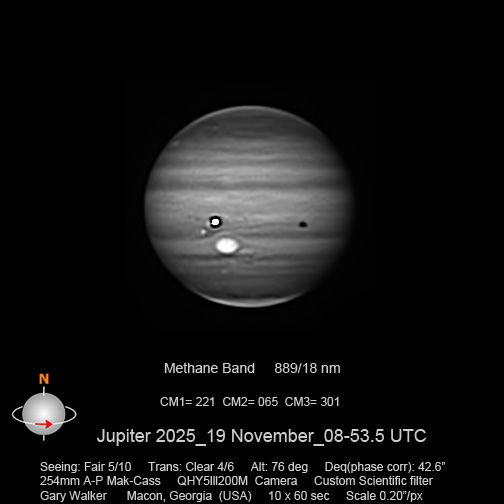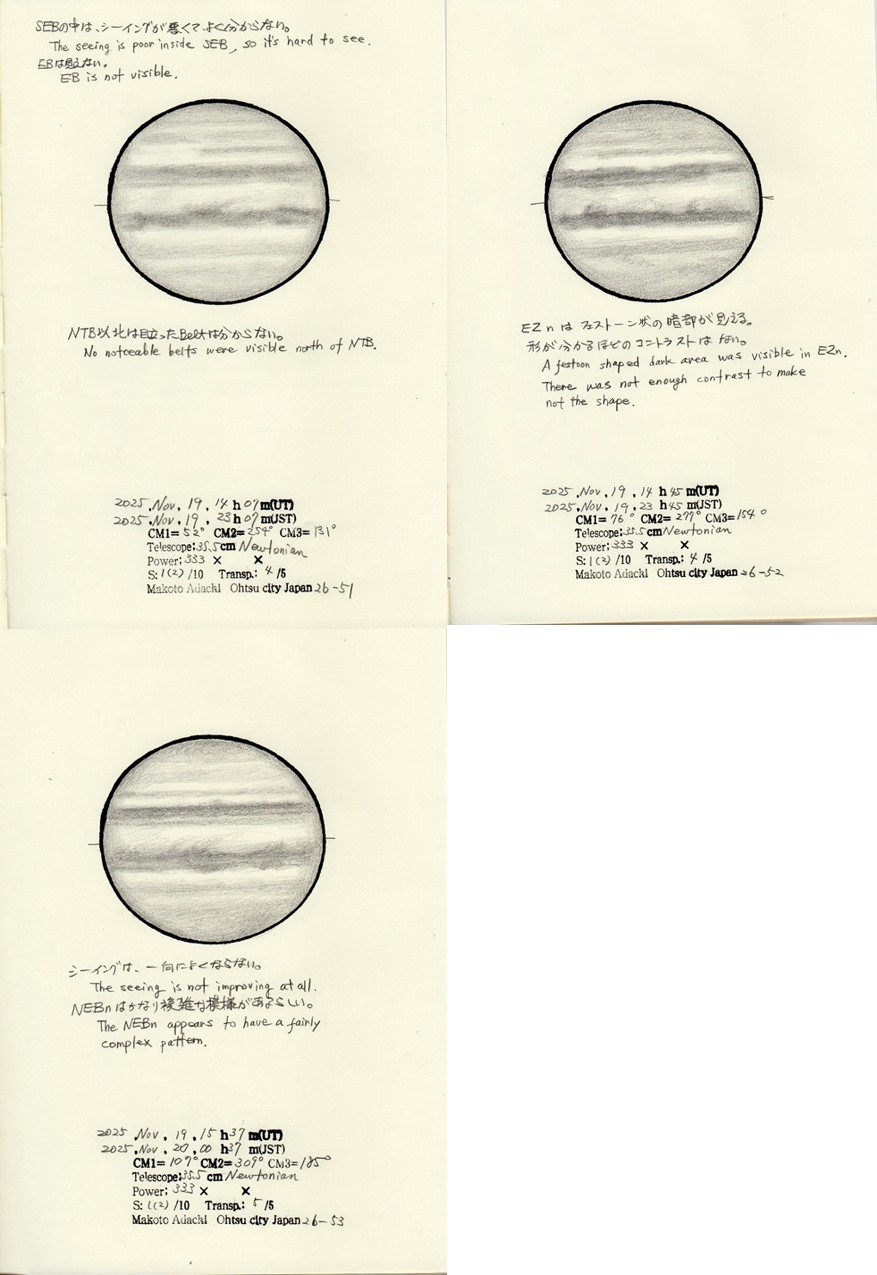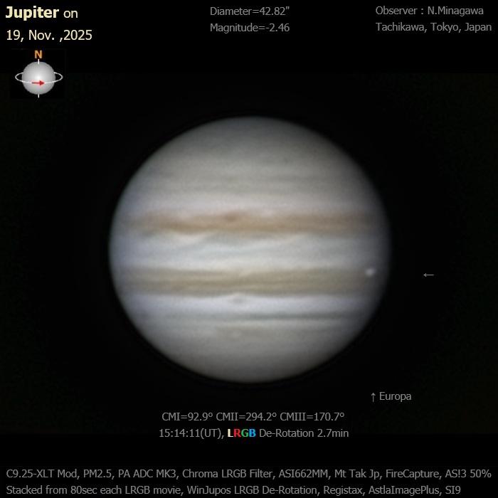丁度エウロパが木星面から脱出するタイミングで目立ち始めていましたが、この後全天雲に覆われて終了しました。