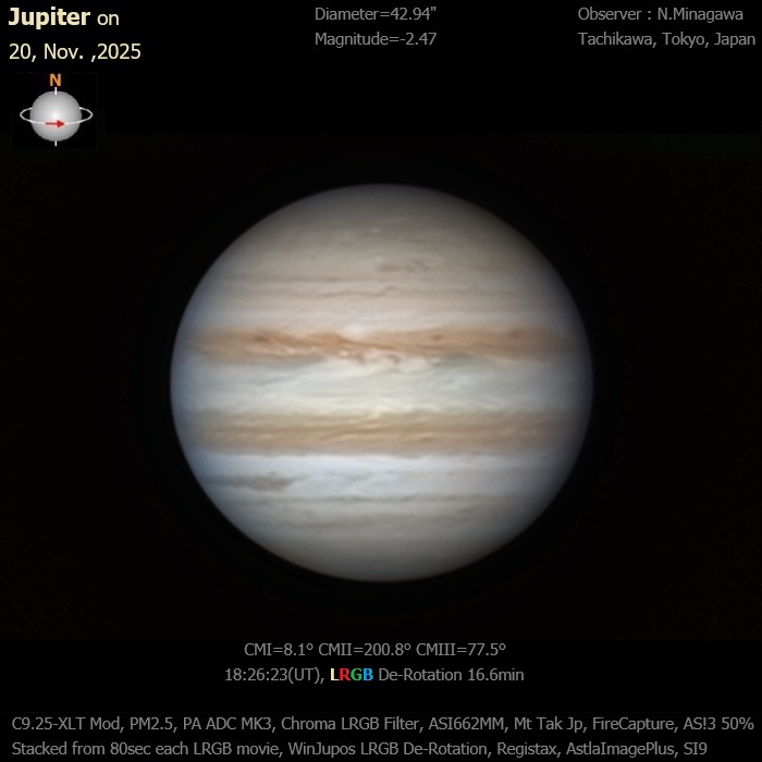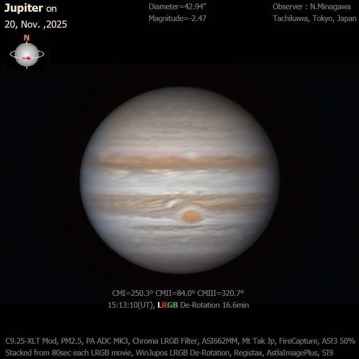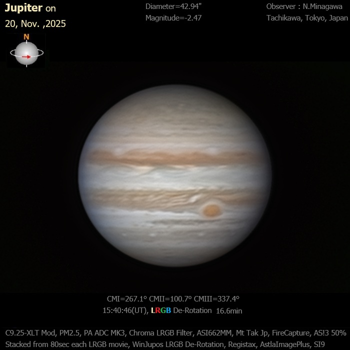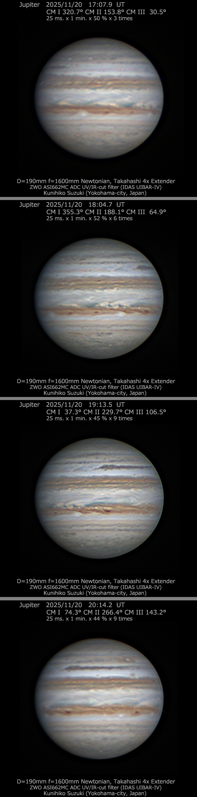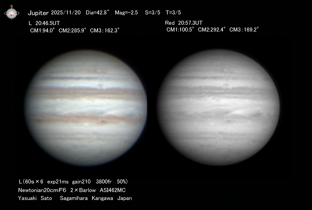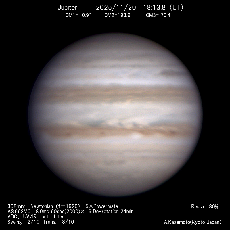昨夜は久しぶりにシーイングが良い時間帯が継続しました。自分にとってはおよそ10か月ぶりの大赤斑を拝めました。
