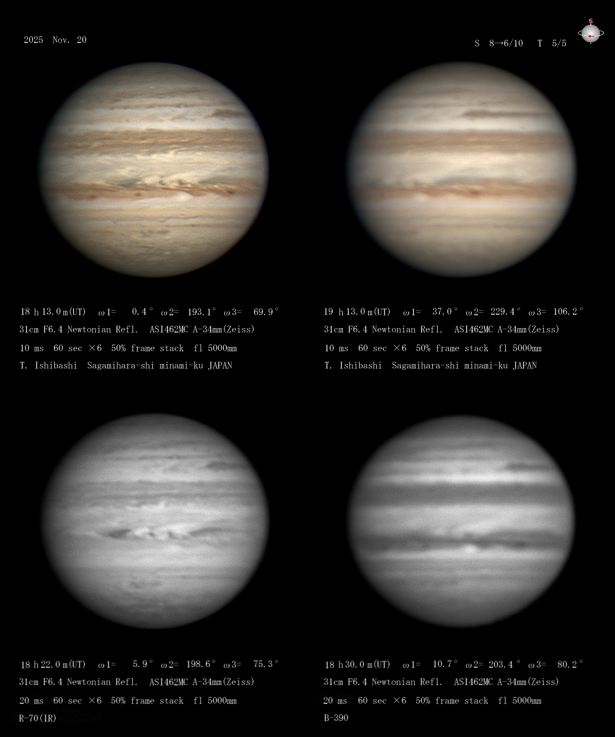 気流/透明度が少し悪い。上側の3枚画像のNEBの中央部分は細部が複雑で白雲部は特に幅が狭い。