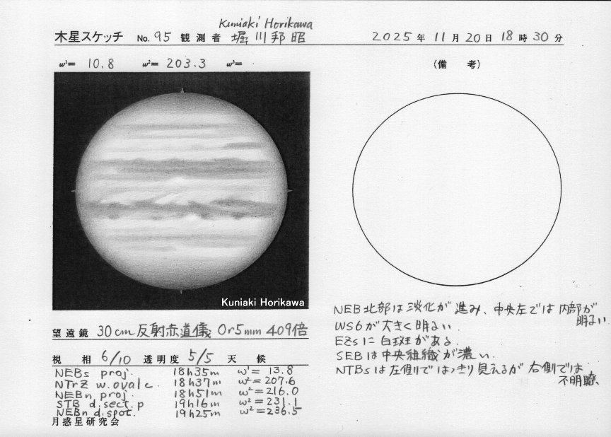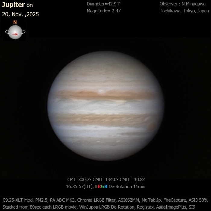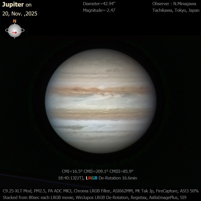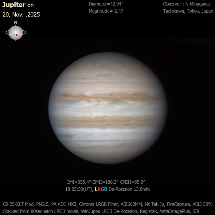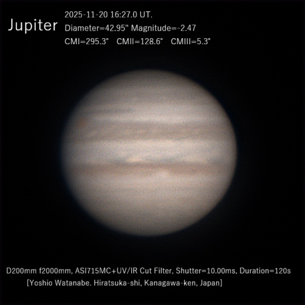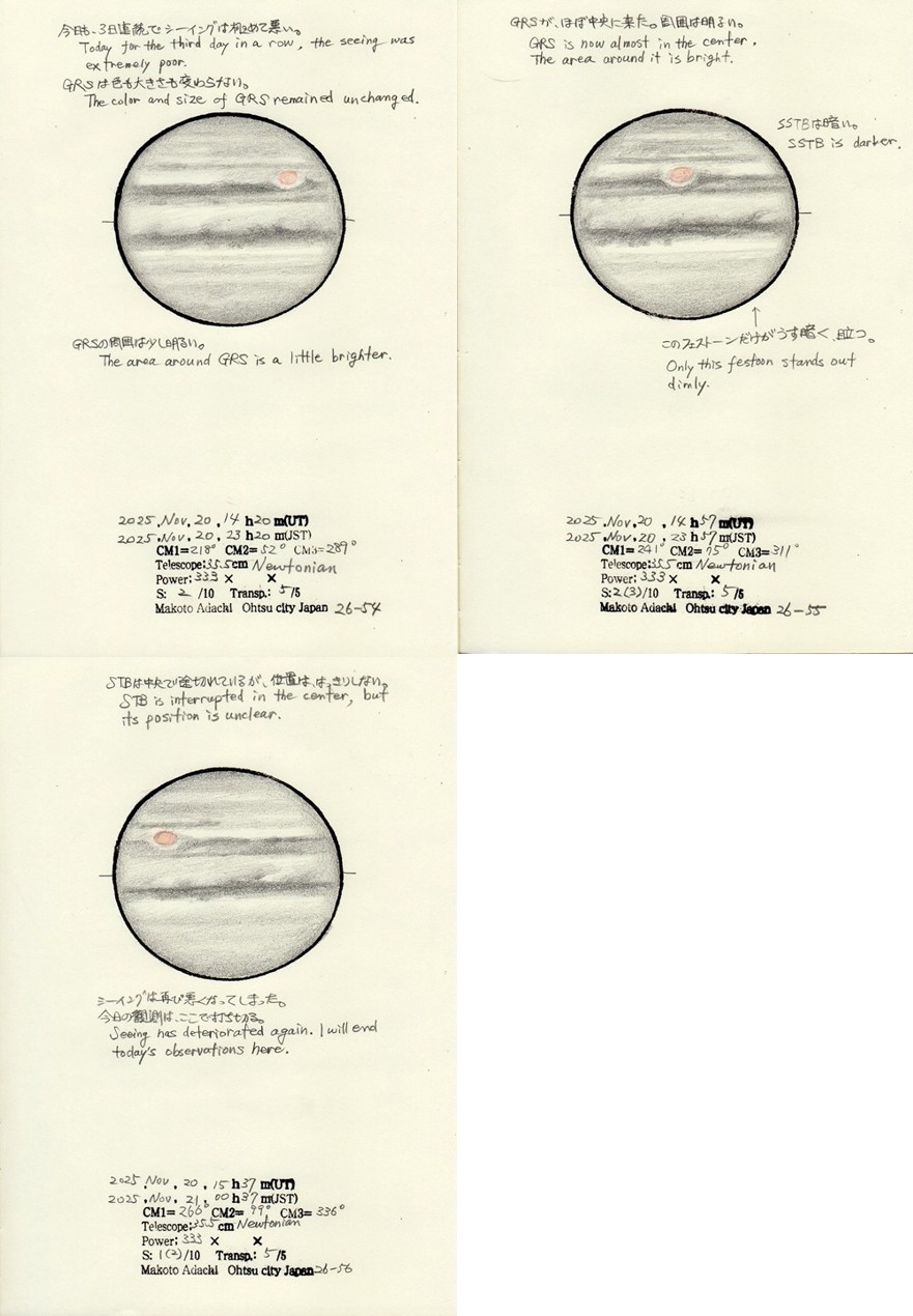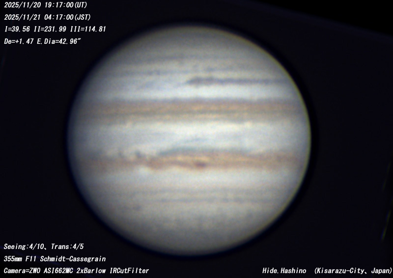今日は寒いわりに良いシーイングでした。大赤斑後方の経度です。