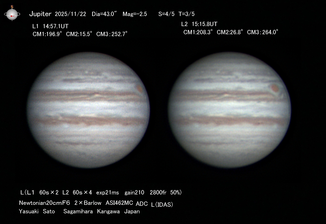鮮明に見えるほどのシーイングではなかったが、存在は確認できた。GRSの左にはそれに伴った暗部が見えかけていた。