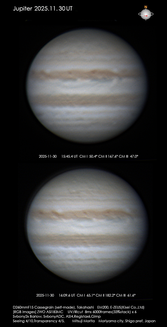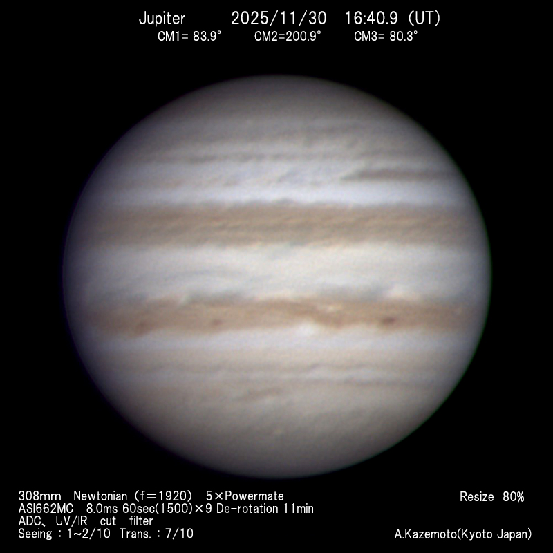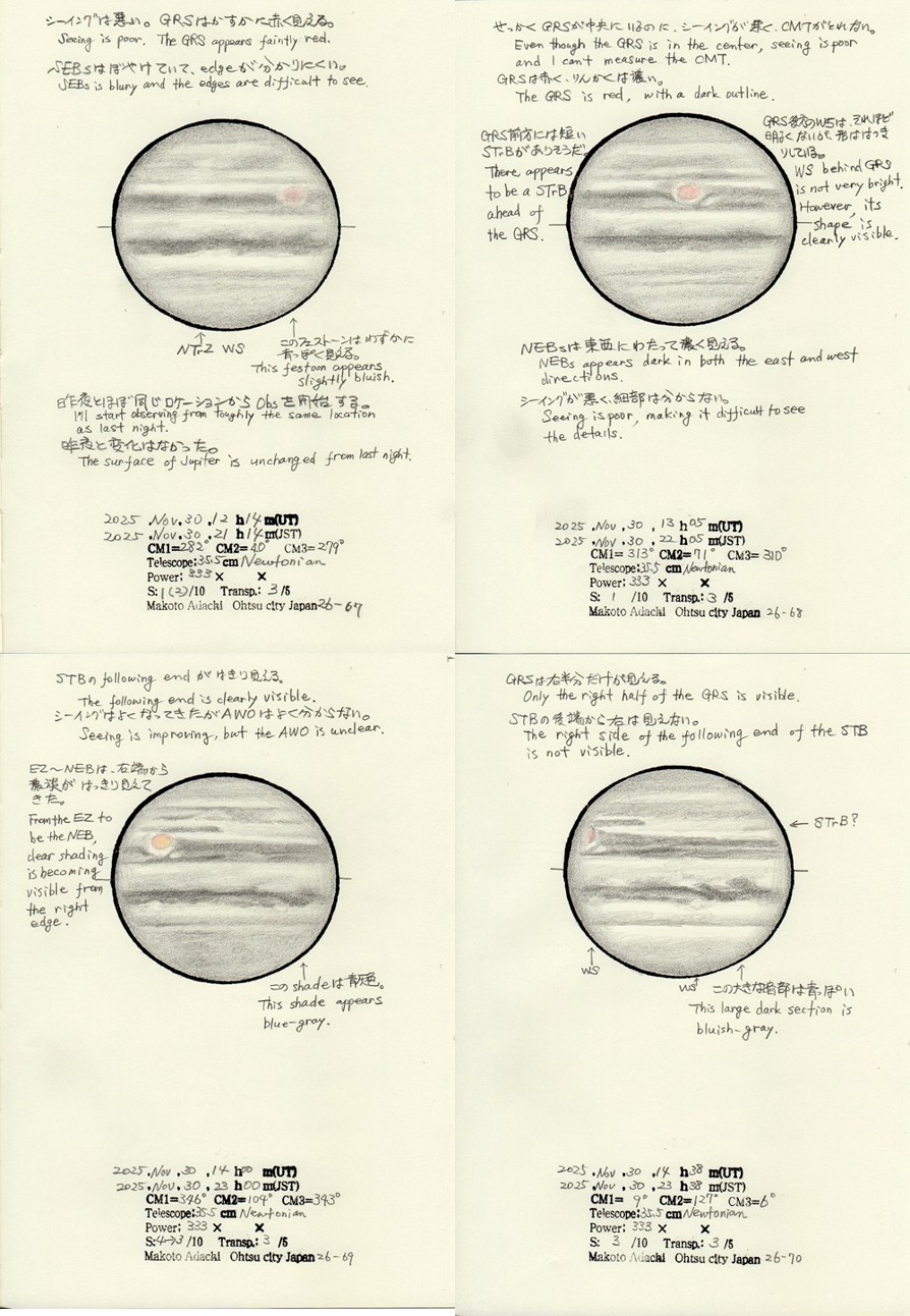 大赤斑がこちらを向いていて、前後の観測ができる絶好の観測部だった。
