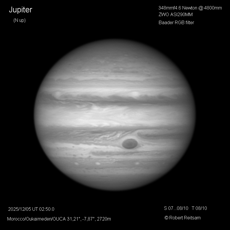 Attached are my latest Jupiter images,taken last night in rather poor seeing conditions.