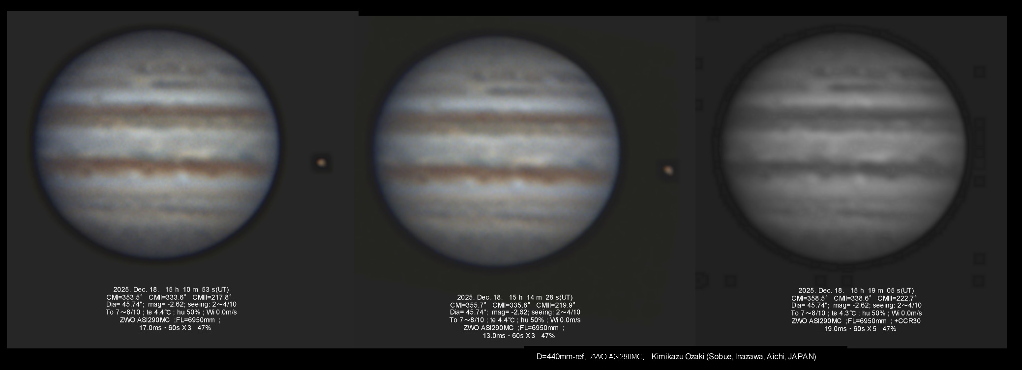 大赤斑は少し淡いものの、輪郭くっきりです。NTrZの白斑は大赤斑の前方に出ました。