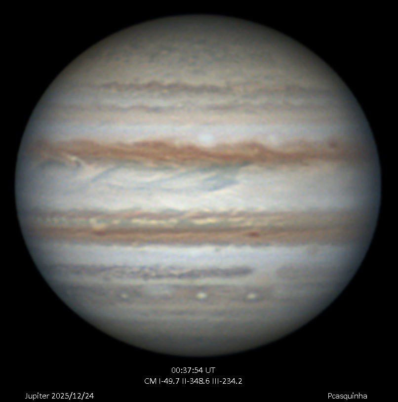 The STB shows the STB Ghost. The south polar red spot can be seen on the first image.