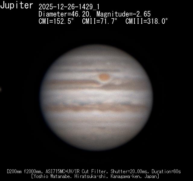 このシーイングではSEB南部が少し淡くなっていることしかわかりません。