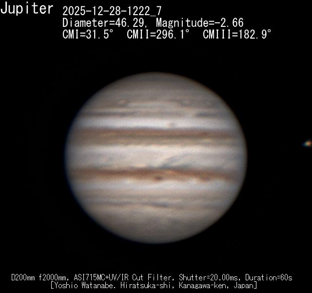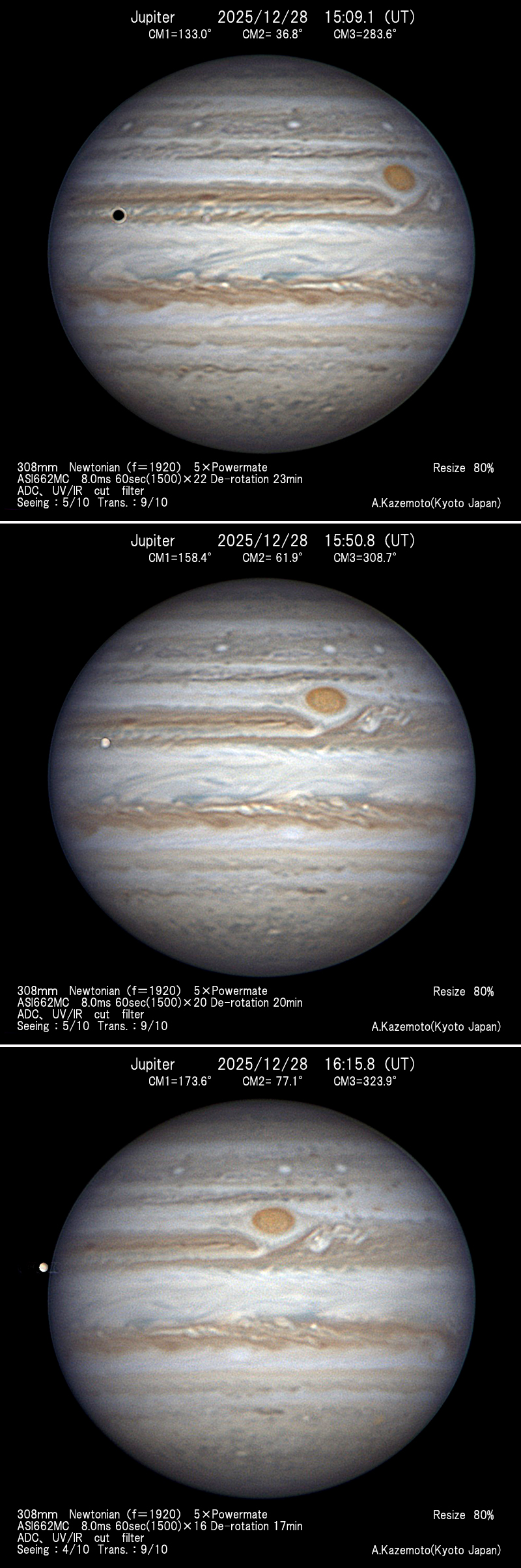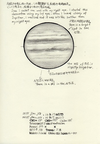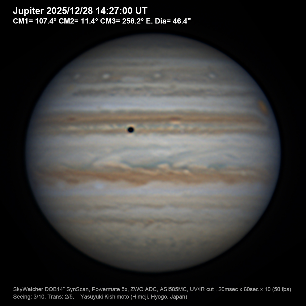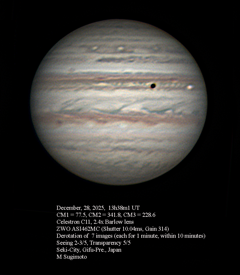 冬にしては良いシーイングでした。東端から大赤斑が姿を見せています。