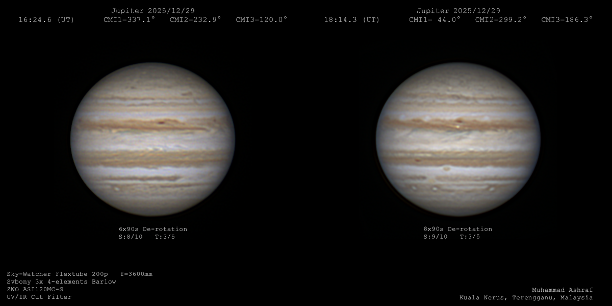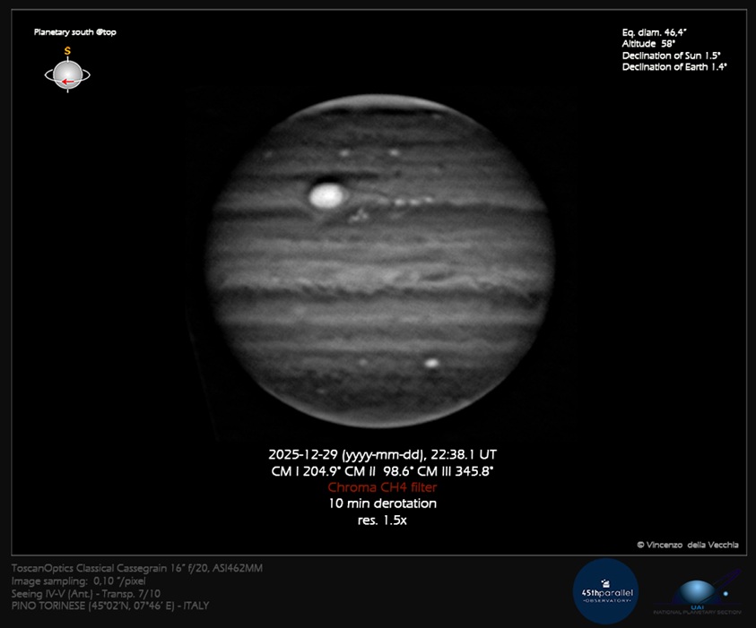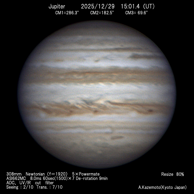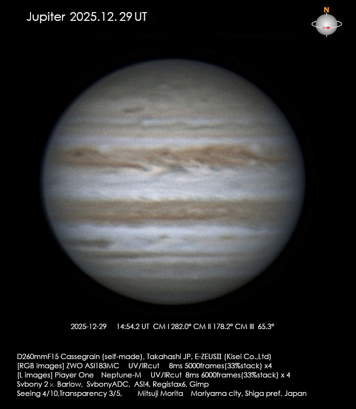 大赤斑後方のSEBはわずかに明るく見えますが、徐々に南へ押し上げられているように感じます。