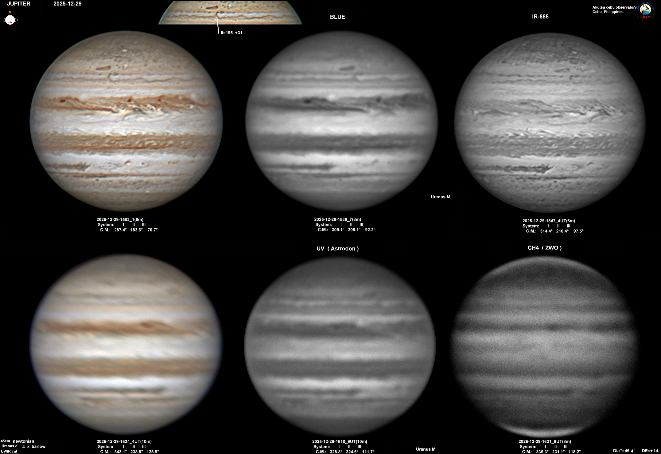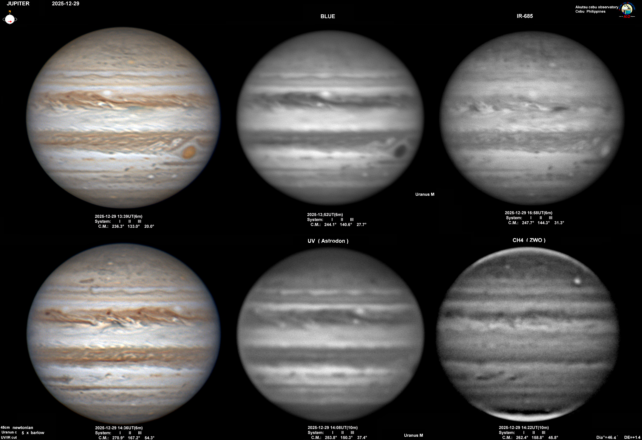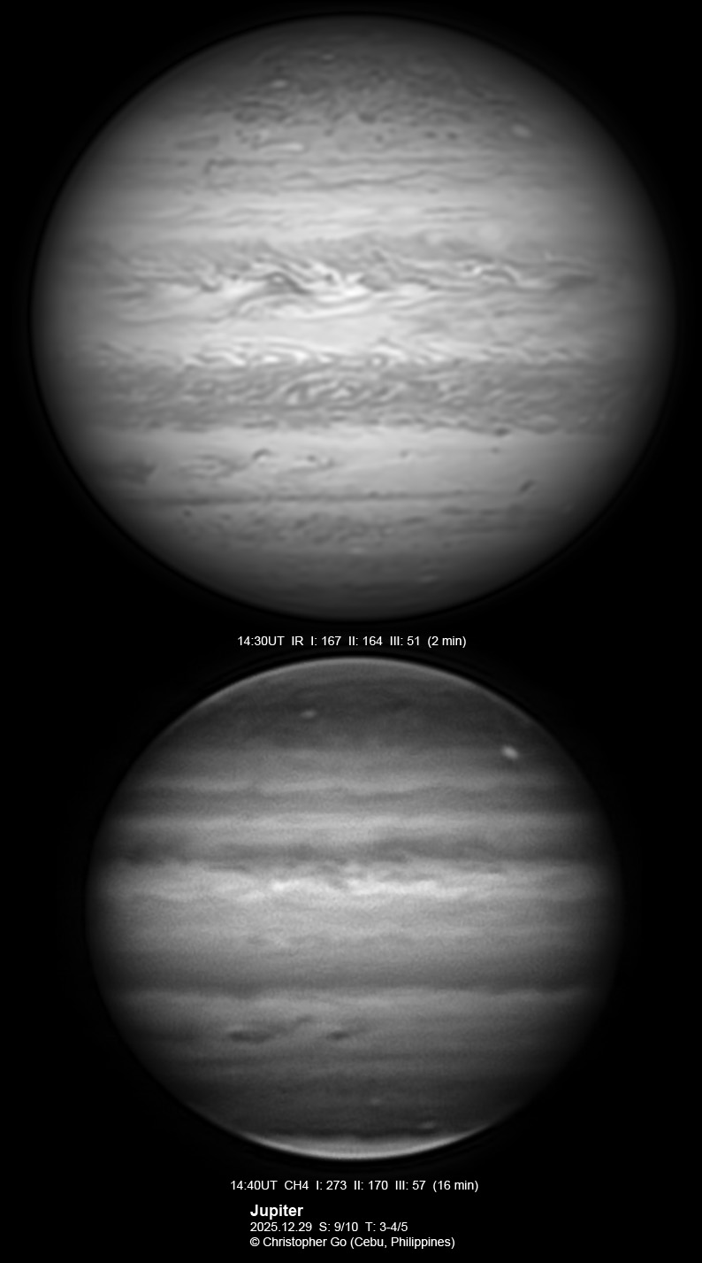 GRSとその後方模様が見えています。GRS直後の白雲は少し明るいがその後方は穏やか。NEBは気流が良かったので激しい模様が見える。