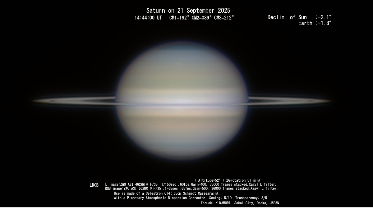 不安定な天候が続いていましたが、久しぶりの撮影でした。一時期よりも環が細くなってきたのがわかりました。