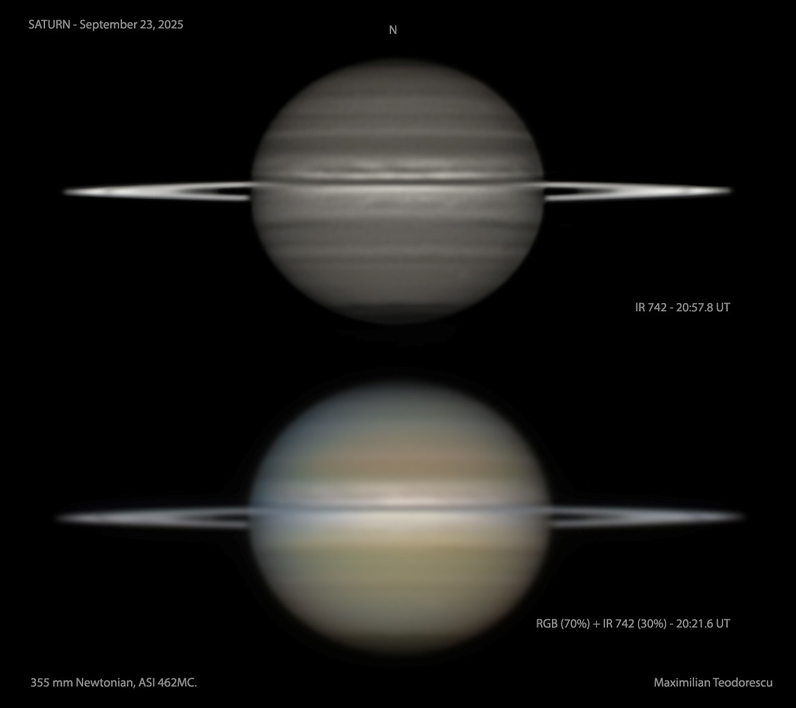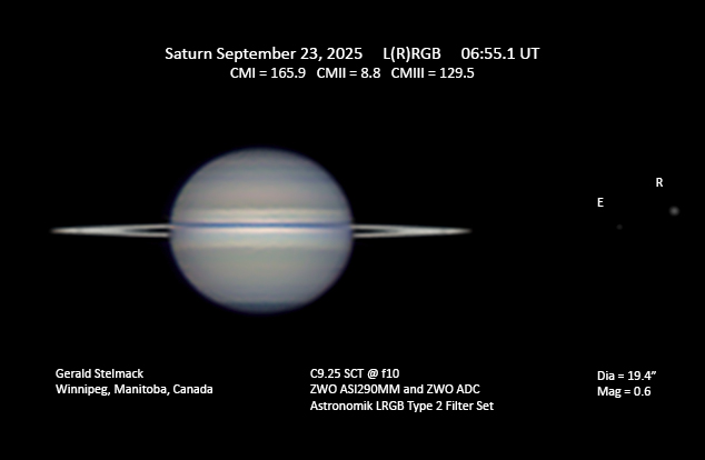 Here is a partial map of Saturn compiled from observations on September 21,22 and 23,2025. All images acquired in near IR (742nm filter). Images used for the map are also shown.
