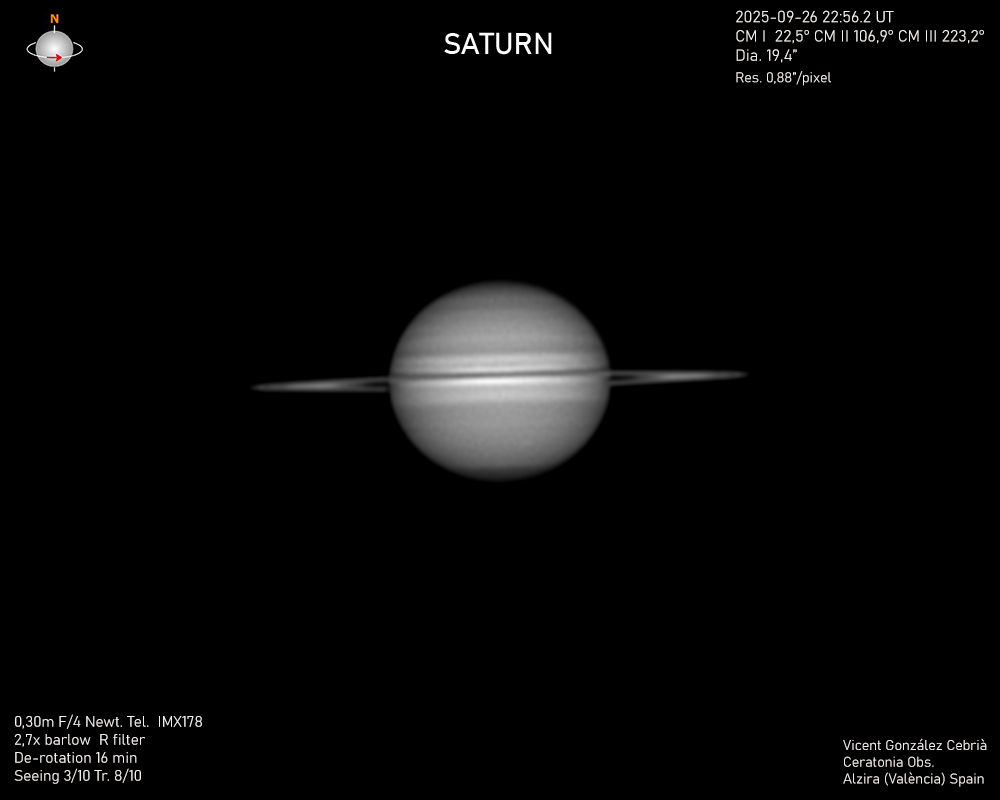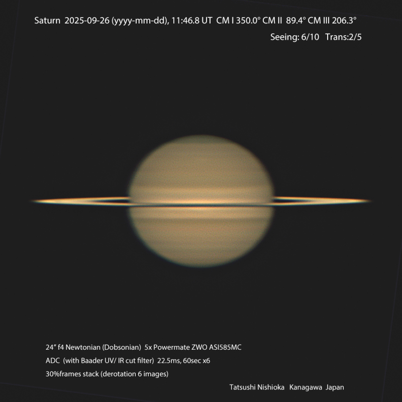 Saturn Image 2025/09/26(UT)