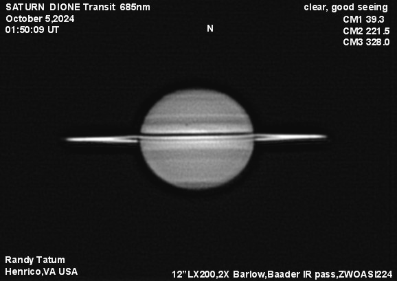 I have captured Dione's shadow transit on Saturn's disk October 5,2025 from 2:34 UT and 3:27 UT. Plus a four-image animation.