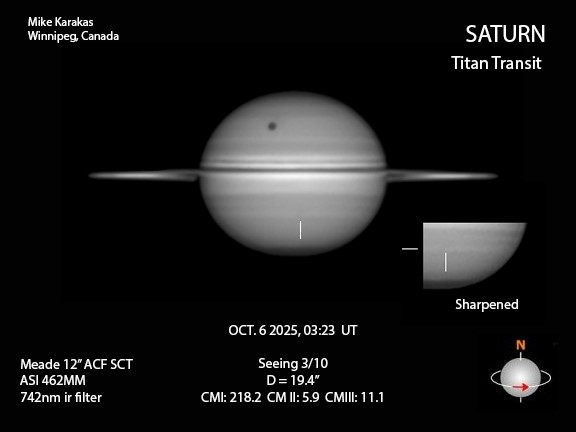 Not the best conditions for yesterday's Titan transit,but the forecast didn't call for clear skies at all,so I'm grateful for what I got! Because the seeing conditions were quite poor,I switched to using a 742nm IR filter,instead of my goto 642nm filter.