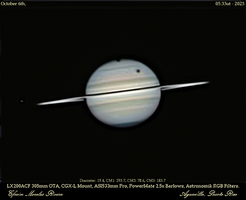 I have attached my 10-image animation showing Titan in transit and its shadow on October 6,2025 from 2:27 UT to 5:42 UT.