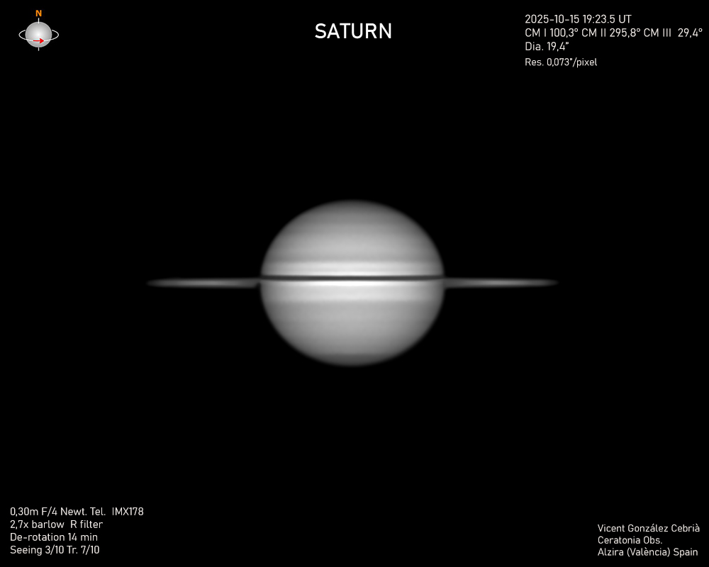 Saturn Image 2025/10/15(UT)